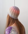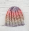 The hat includes instructions for both Fingering and DK yarn and has been tested for both. It is knitted in the round and has a mock cable effect created by twisting 2 stitches as you are knitting (swapping the order you work them). All stitches are explained in the pattern.Sizes: One size, although instructions for adapting are given in the pattern. It is on the to-do list to re-write the pattern to include more sizes. But for now, since the pattern includes instructions for DK and fingering weight versions, it would be possible to cast on the fingering weight stitch number in DK for a larger hat, or the DK weight number in fingering weight for a smaller hat.