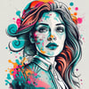 Silhouette of a long-haired tattoo girl in a photo booth retro style.