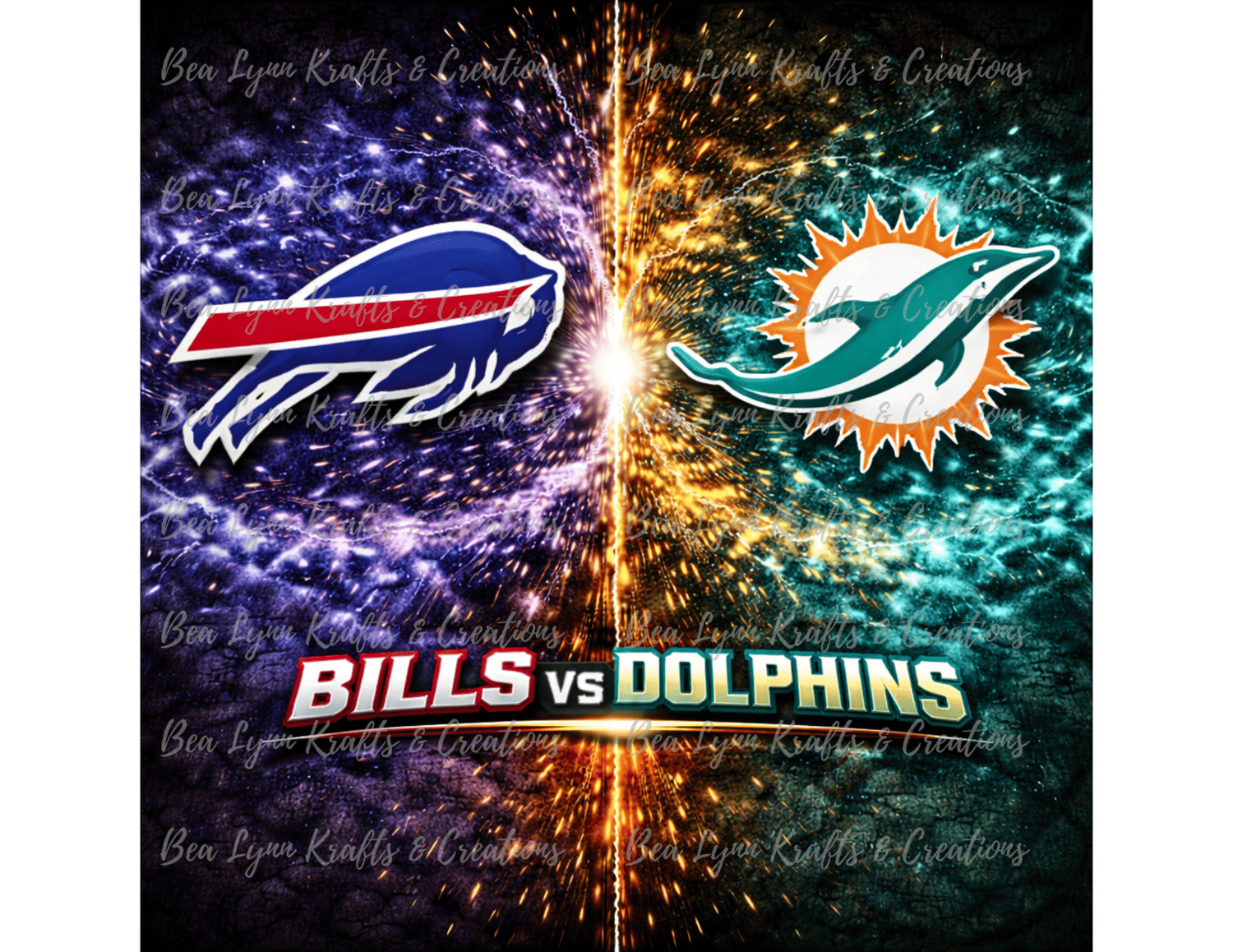 Bills vs Dolphins Split Lightning Football Matchup PNG Sublimation Design