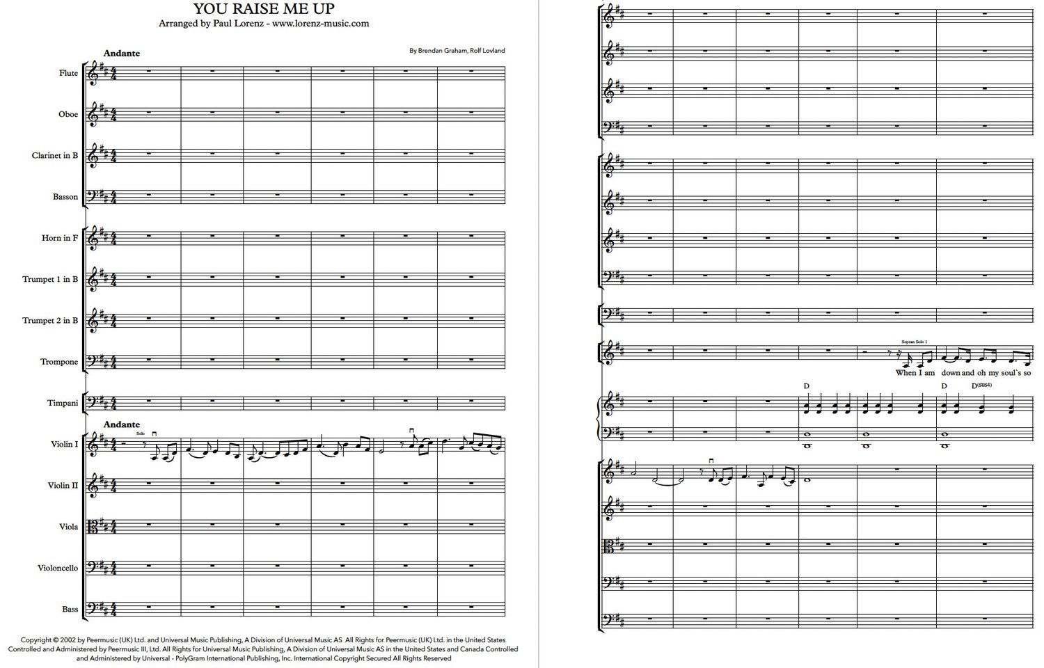 You Raise Me Up For Orchestra, Choir (SATB) & Piano