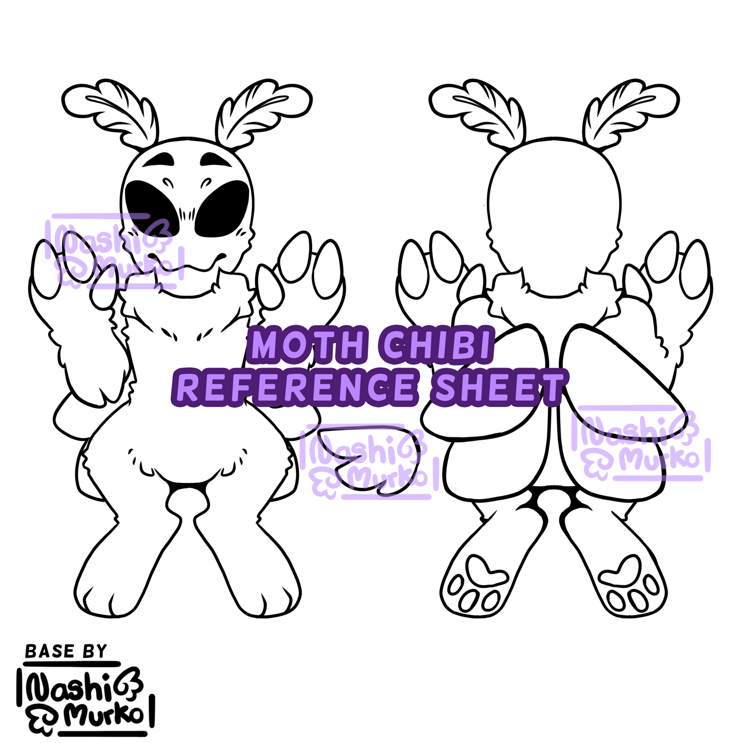 Moth 2 Sided Chibi Base Drawing - Digital Download