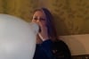 Robin challenges herself to blow up the blue balloon as big as possible until it pops. It was pretty loud so she grabs for her ears in the end.