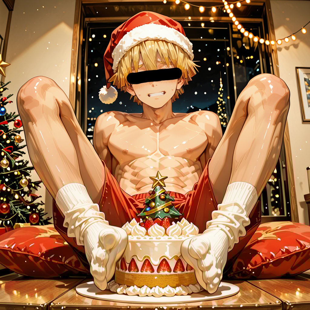 クリスマスをテーマに、サンタやトナカイコスプレをしている男性を、キャラクターごとにお任せ作成しました。男らしいキャラクターの魅力を思い切って表現しました。