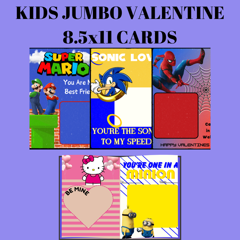 Kids 8.5 X11 JUMBO VALENTINE CARDS