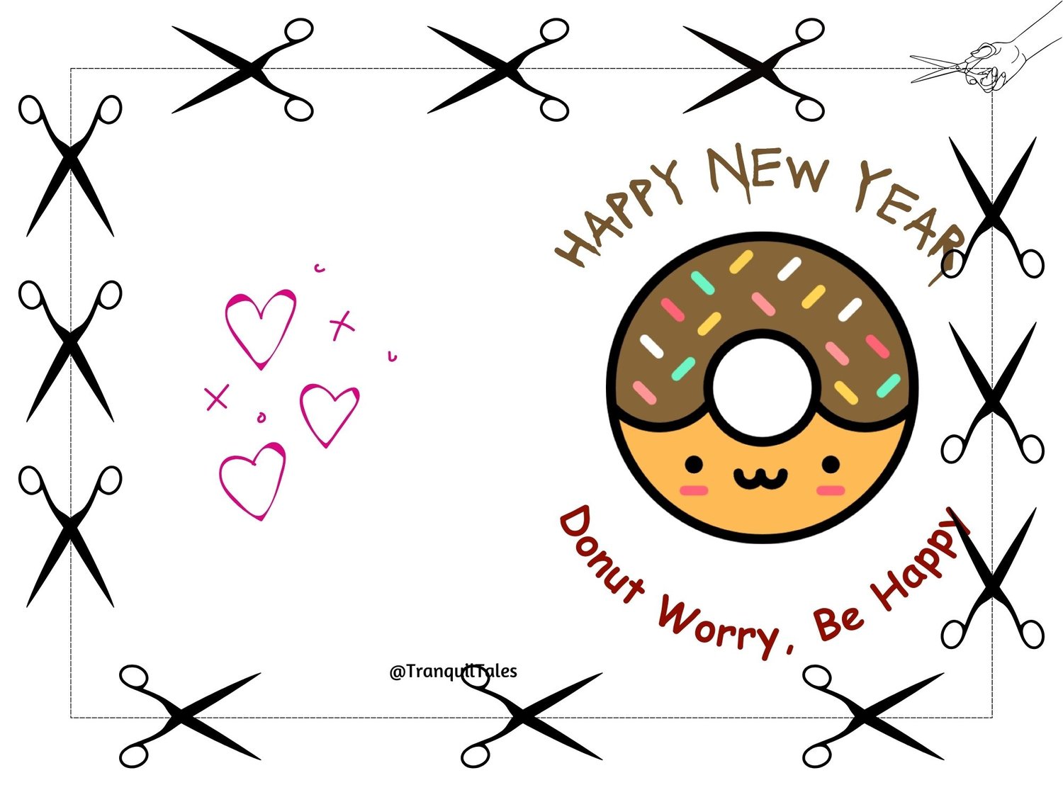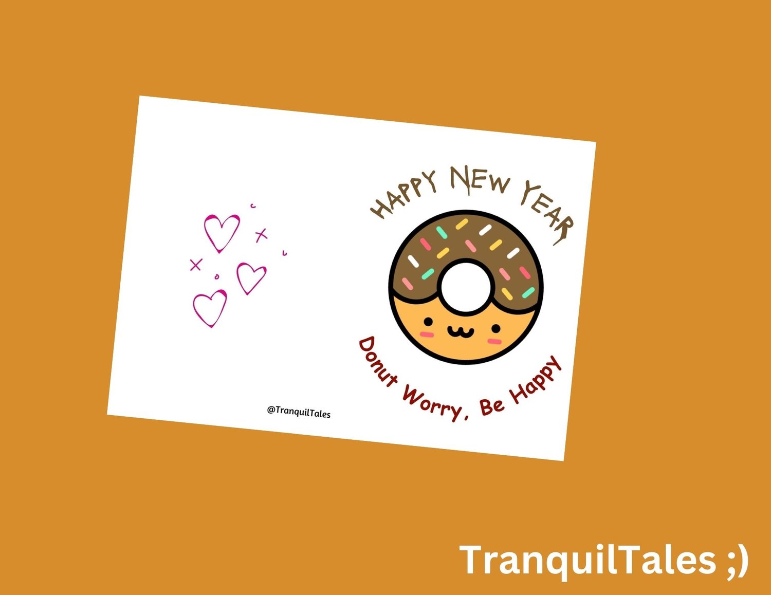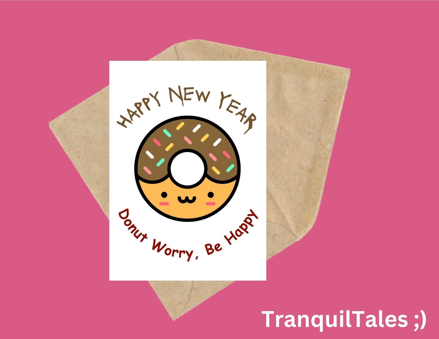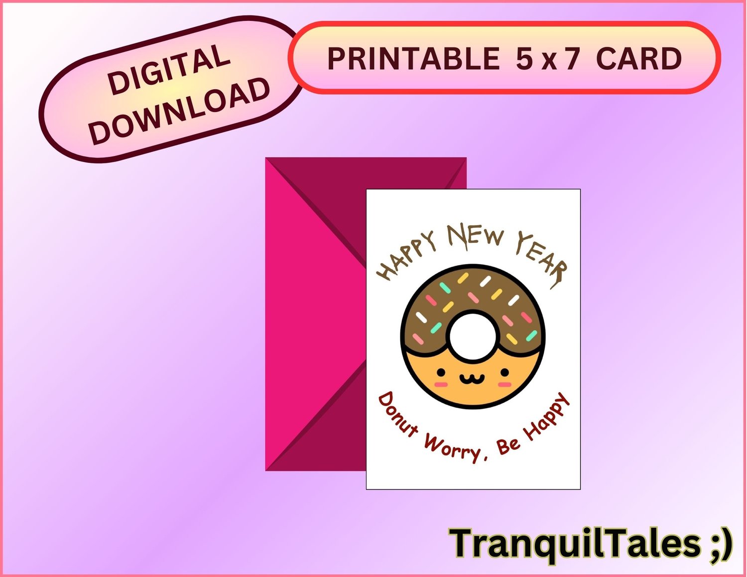 HAPPY NEW YEAR Donut Worry, Be Happy Card - 5" x 7" inches - New Year card - PDF File