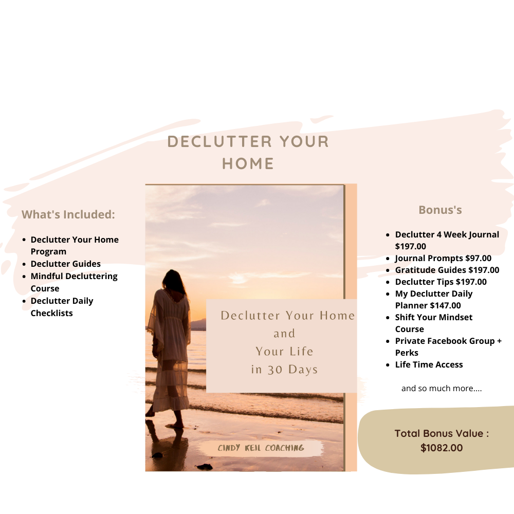 Declutter Your Home Course will make clearing the clutter simple, easy so you can have less stress, more calm, peace and joy in your life! 😀