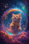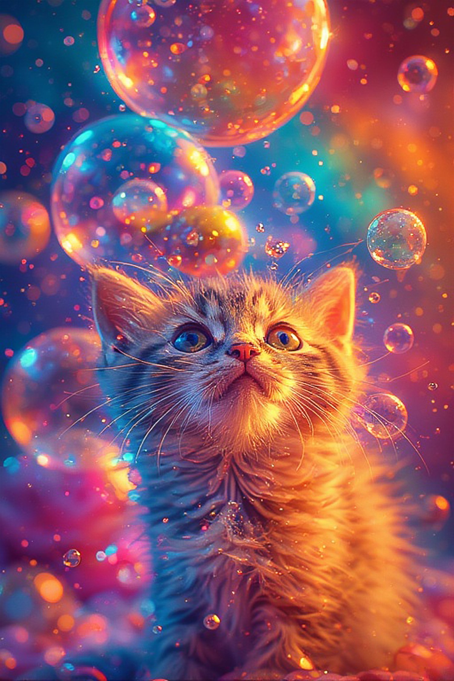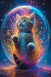 Creative colorful images of a curious kitten in a bubble - AI generated.