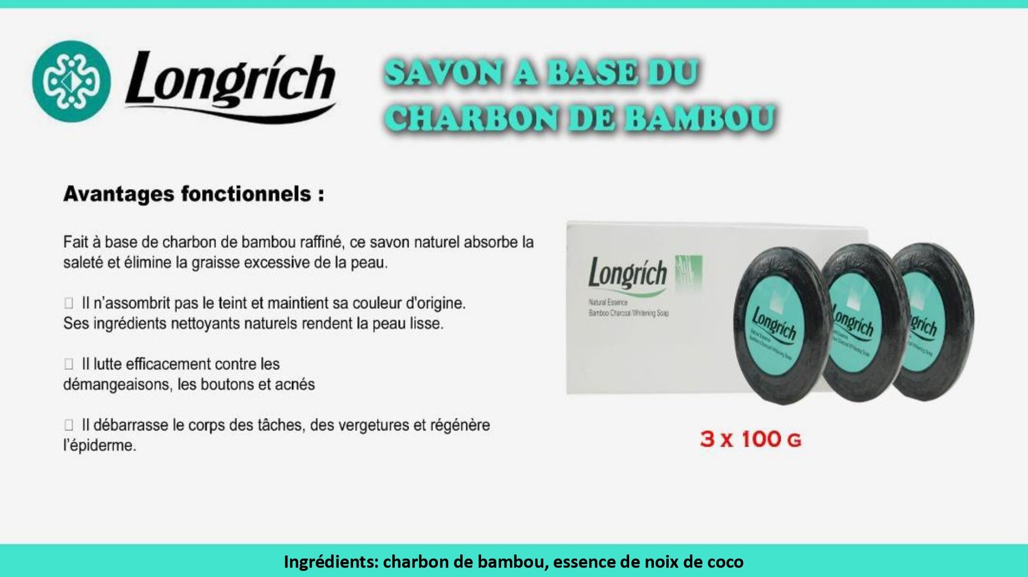Fait à base de charbon de bambou raffiné, ce savon naturel absorbe la saleté et élimine la graisse excessive de la peau.