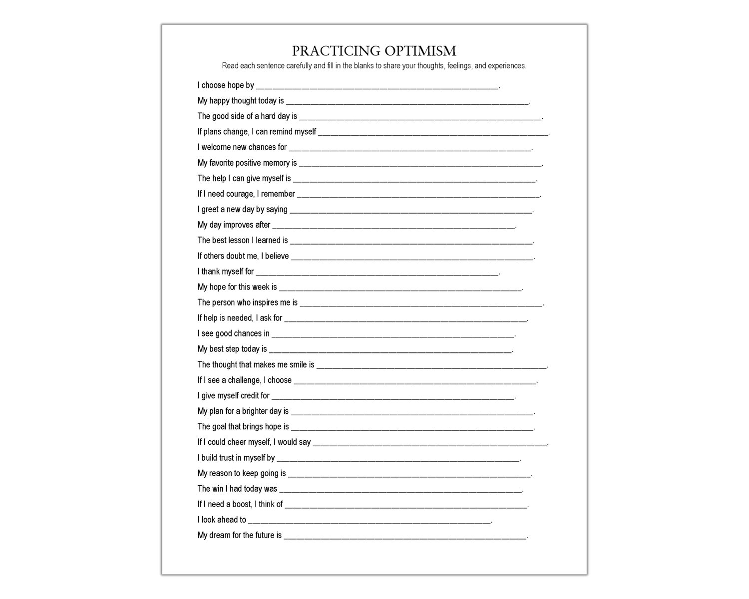 Practicing Optimism Worksheet, Positive Thinking, Growth Mindset, Gratitude, Law of Attraction, Goal Setting, Emotional Regulation