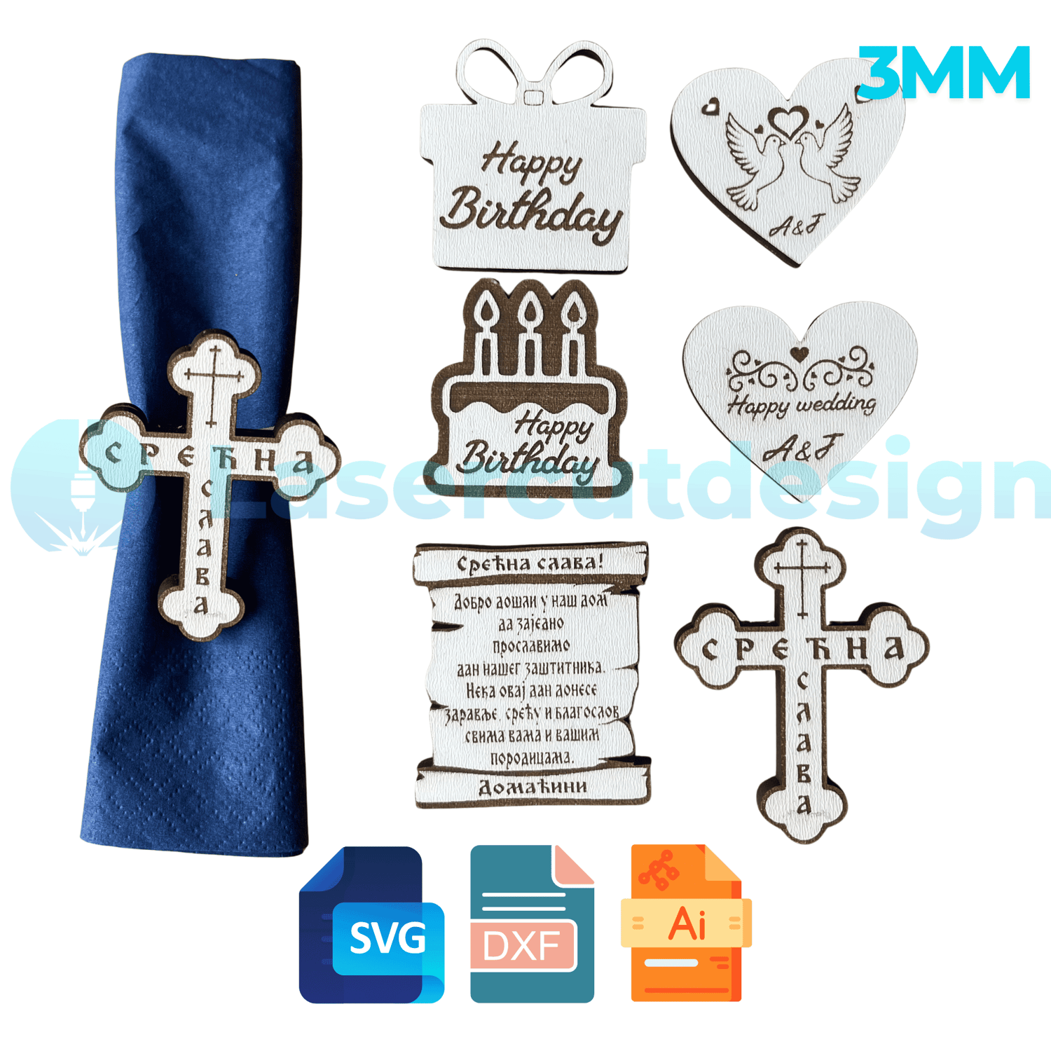 Napkin Rings Laser Cut Files | Wedding Birthday Slava SVG DXF AI | 3mm Wooden Holder Templates