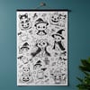 Cute Halloween doodle coloring poster / Printable Halloween coloring sheet / Giant Halloween coloring poster.