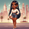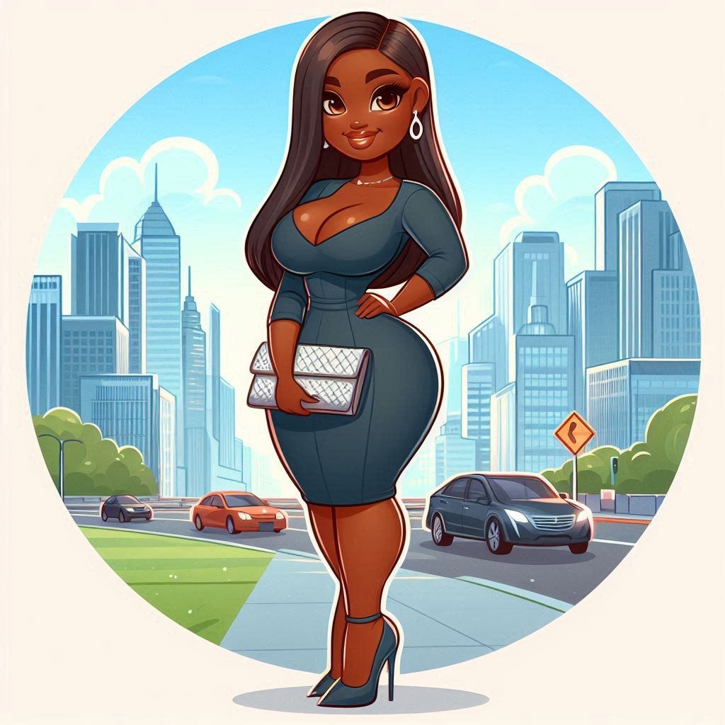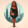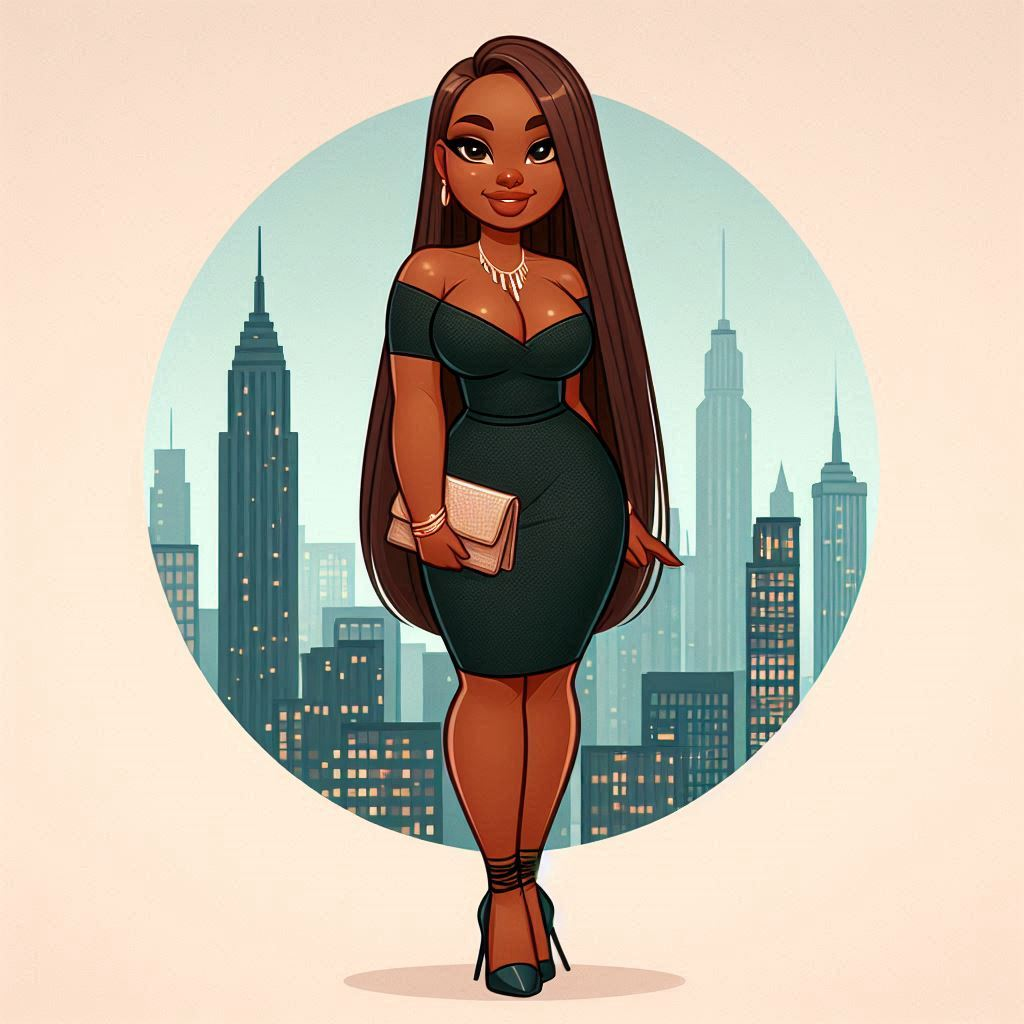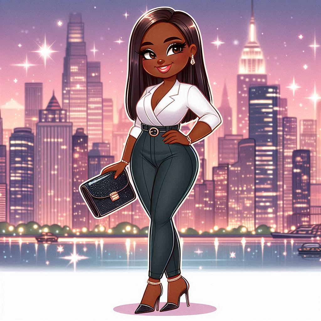 The image features an illustration of a person standing in front of a stylized cityscape that resembles New York City, with the Empire State Building visible in the background. The person is wearing a white top, denim shorts, and high heels, and is holding a purse. At the top of the image, there’s an inspiring quote: “The only person you are destined to become is the person you decide to be.”