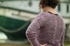 The Keeley Gansey combines traditional Gansey elements with modern feminine details. Underarm gussets, short-row shoulders, and ribbing ensure a close, comfortable fit, while lace panels add interest to the front, back and sleeves. A change in stitch patterns accentuates the waist and a picot bind-off finishes the hem and cuffs. This pattern includes written directions as well as charts and an assembly diagram.