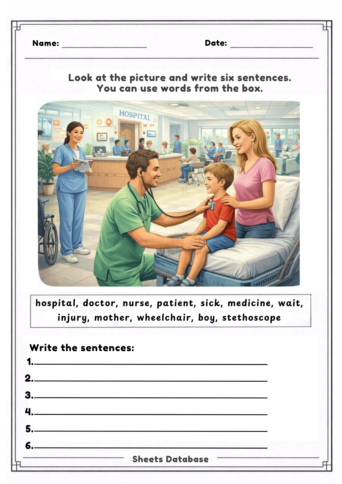 - Space for students to write six sentences