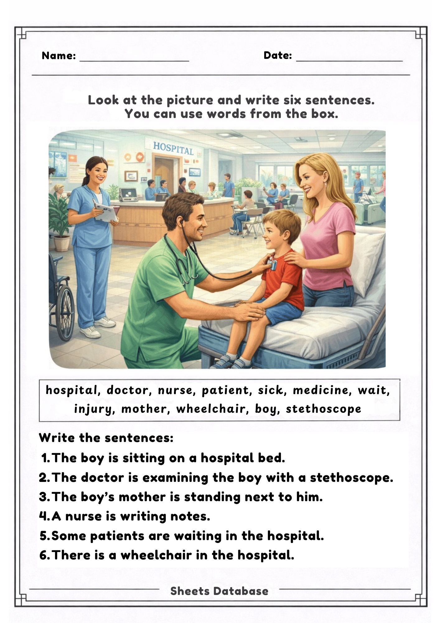 These worksheets encourage creative thinking, vocabulary development, and sentence structure practice while keeping students motivated with interesting real-life scenes such as the beach, farm, hospital, market, camping, train station, and more.