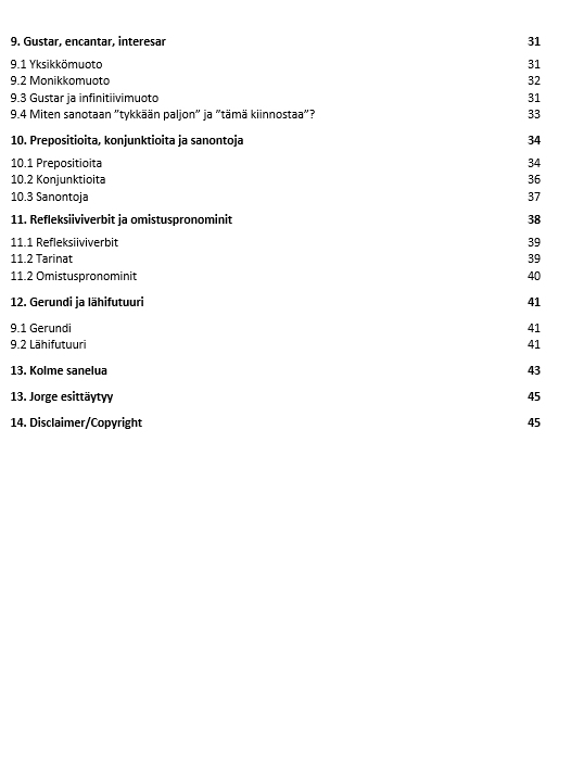 Tämä e-kirja on hyödyllinen espanjan kielen opiskelijoille ja kaikille niille, jotka haluavat oppia lisää tai kerrata perusasioita. Se sopii sekä aloittelijoille, keskitason opiskelijoille että edistyneille. Ekirja kattaa espanjan kielen perusteet, ja siinä on useita audiolinkkejä (yli 30 kpl), joissa syntyperäiset kielenpuhujat auttavat Sinua sanojen ja lauseiden ääntämisessä. Ekirjassa on myös videolinkkejä (14 kpl), joissa Ekirjan tekijä opettaa sinulle kieliopin asioita.
