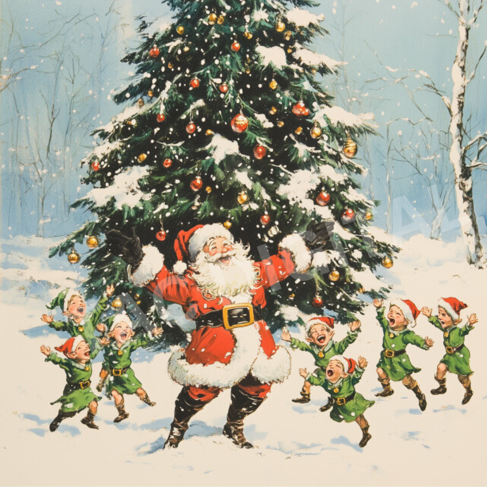 Our Vintage Santa with Elves Collection AI graphics are 3125x3125, 300 dpi. Created with love to share joy with Holiday lovers everywhere. They may be used as wall art, in new projects, social media, digital planning, junk journaling, scrapbooking and more.