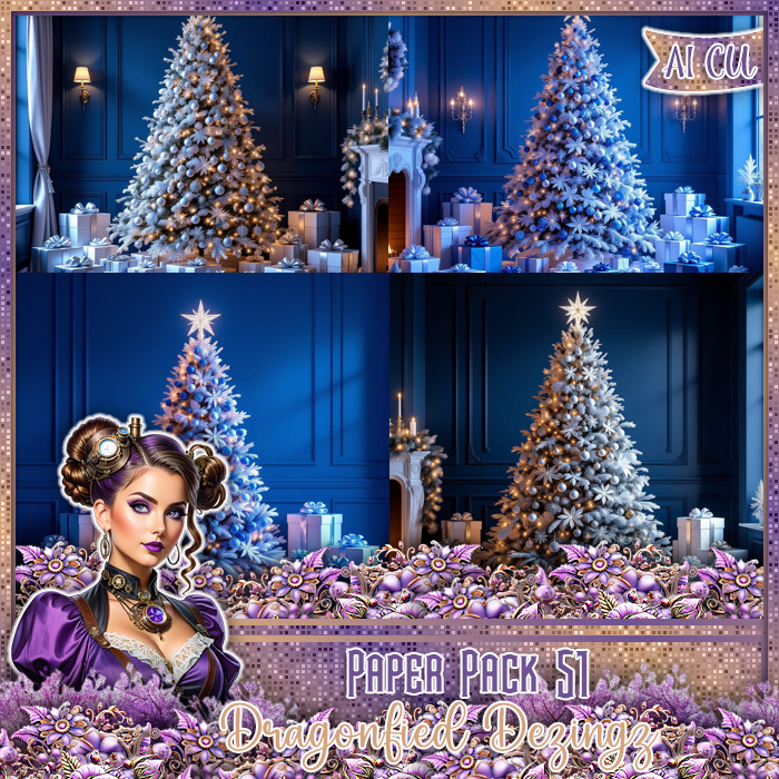 4 FS Blue Christmas indoor themed scenic papers.