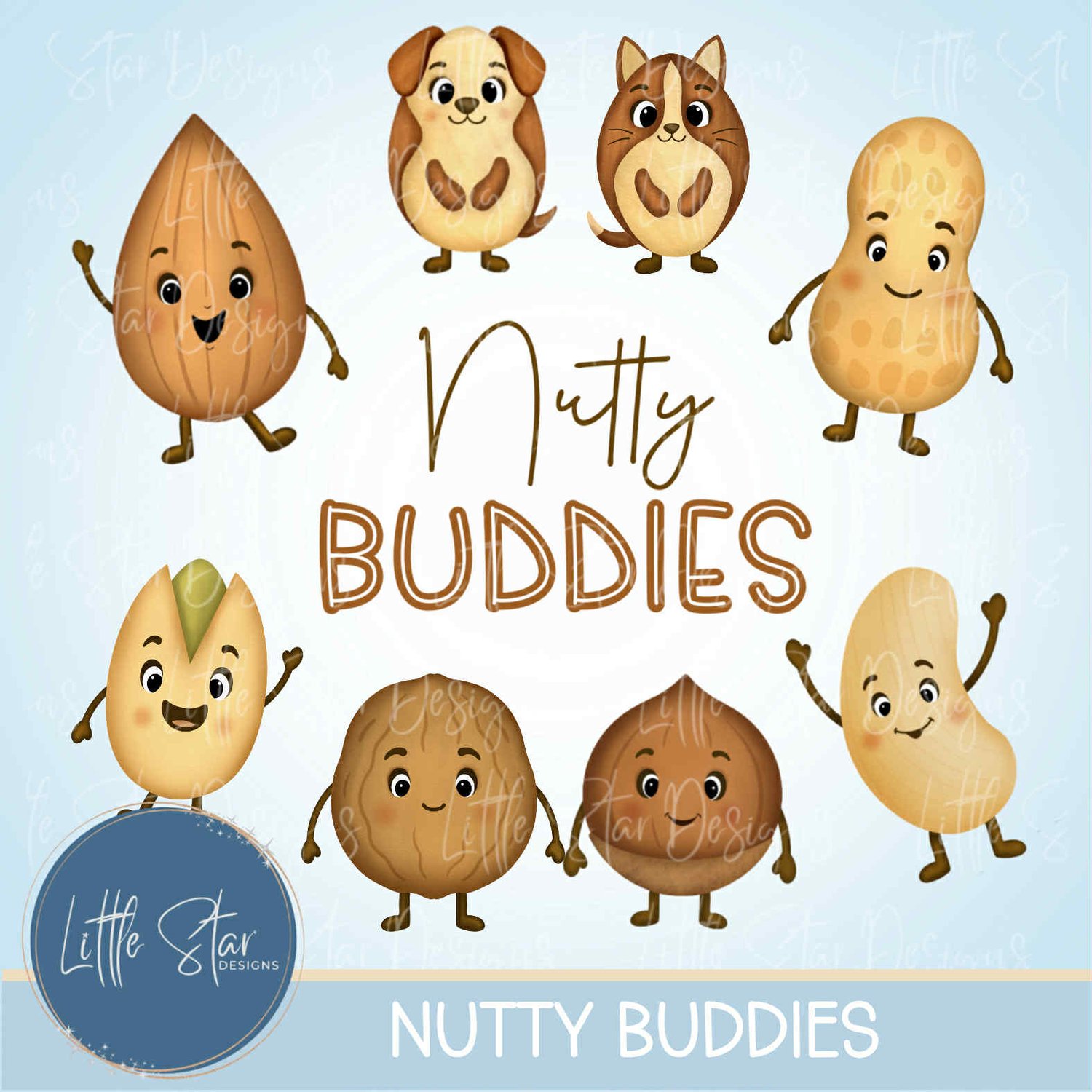 This is a high-quality hand drawn (300dpi PNG) clipart set digital download of my original artwork, titled “Nutty Buddies”