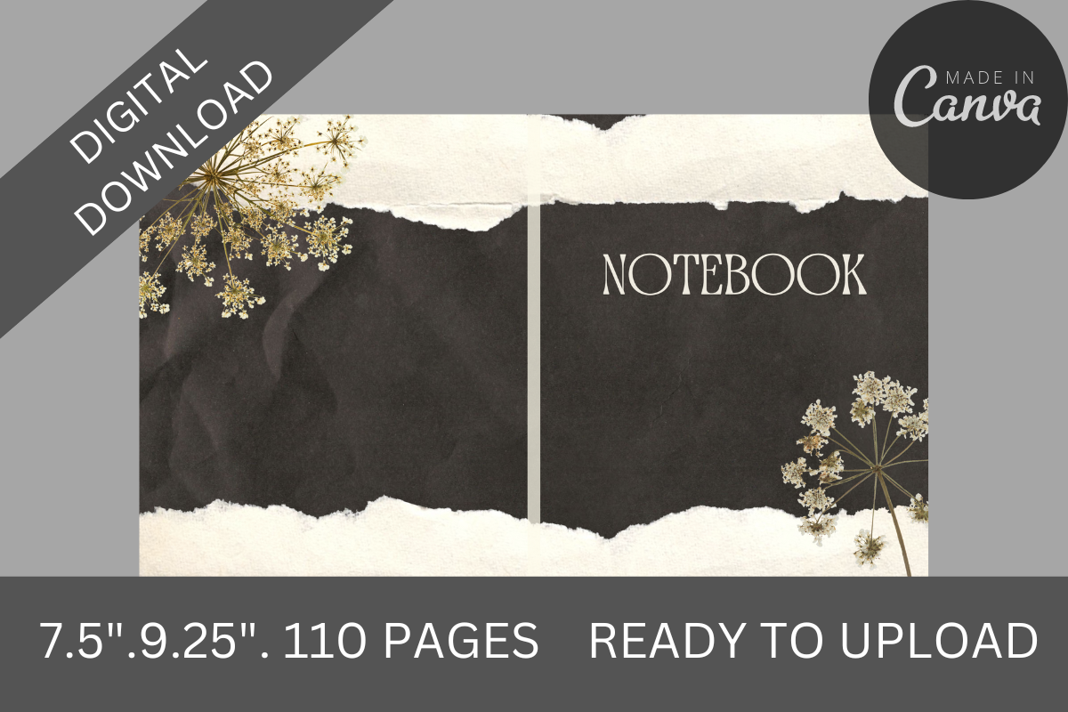 INTERIOR+COVER FOR FLOWER KDP LINED PAPER, LOW CONTENT BOOK FOR KDP READY UPLOAD, FLOWER KDP JOURNAL PAPER, FLOWER JOURNAL NOTEBOOK MOCKUPS, KDP CANVA NOTE