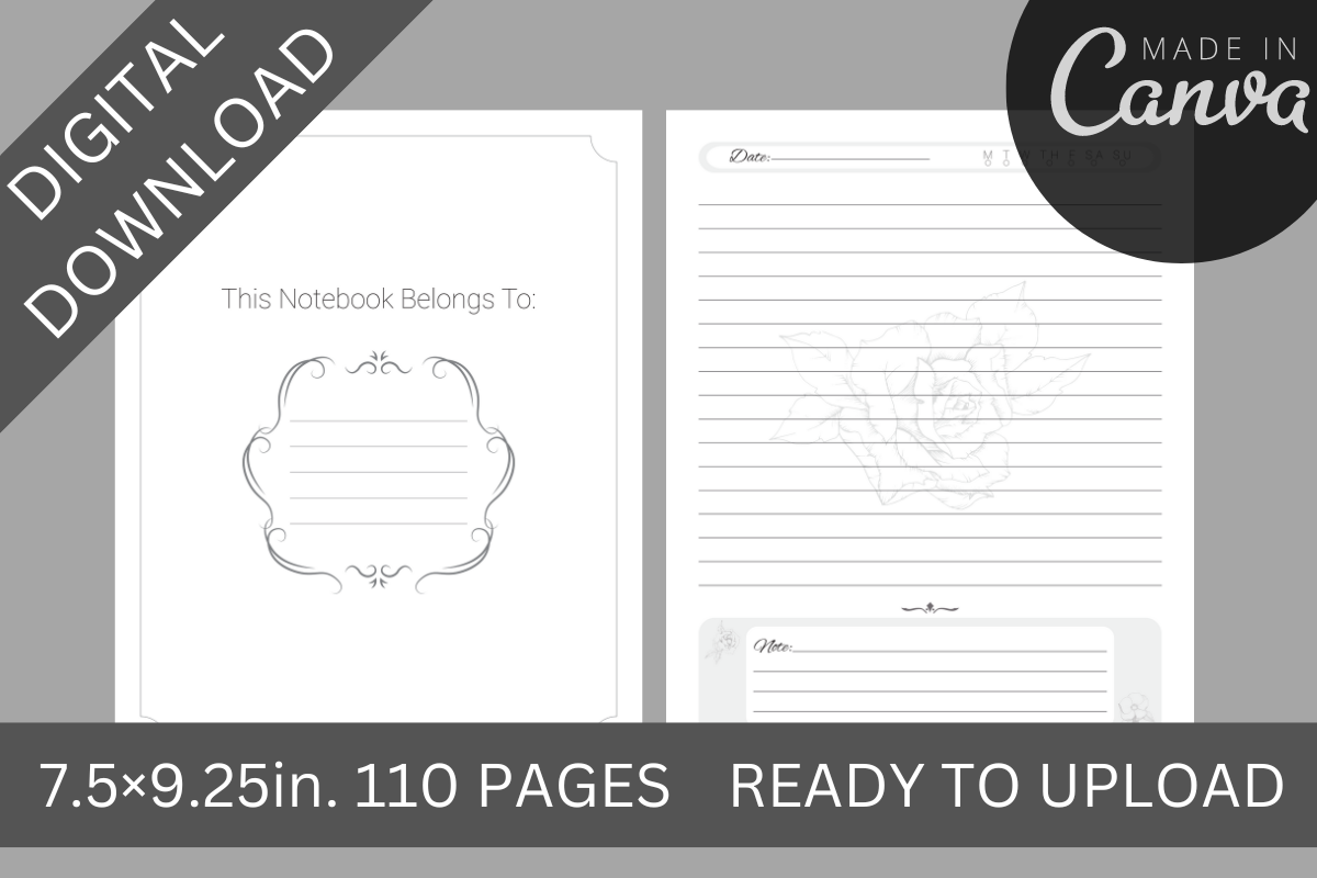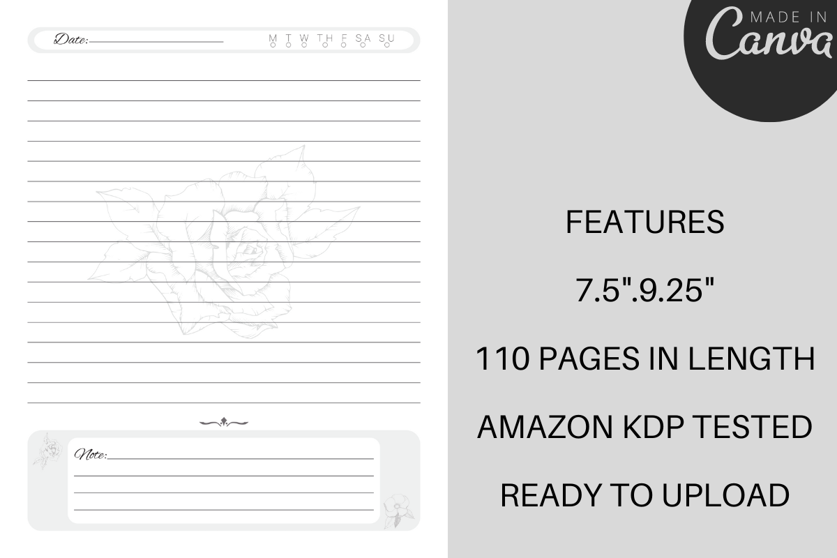 With this interior, you can quickly and easily upload a high-quality, professional-looking lined flower notebook or journal for KDP.