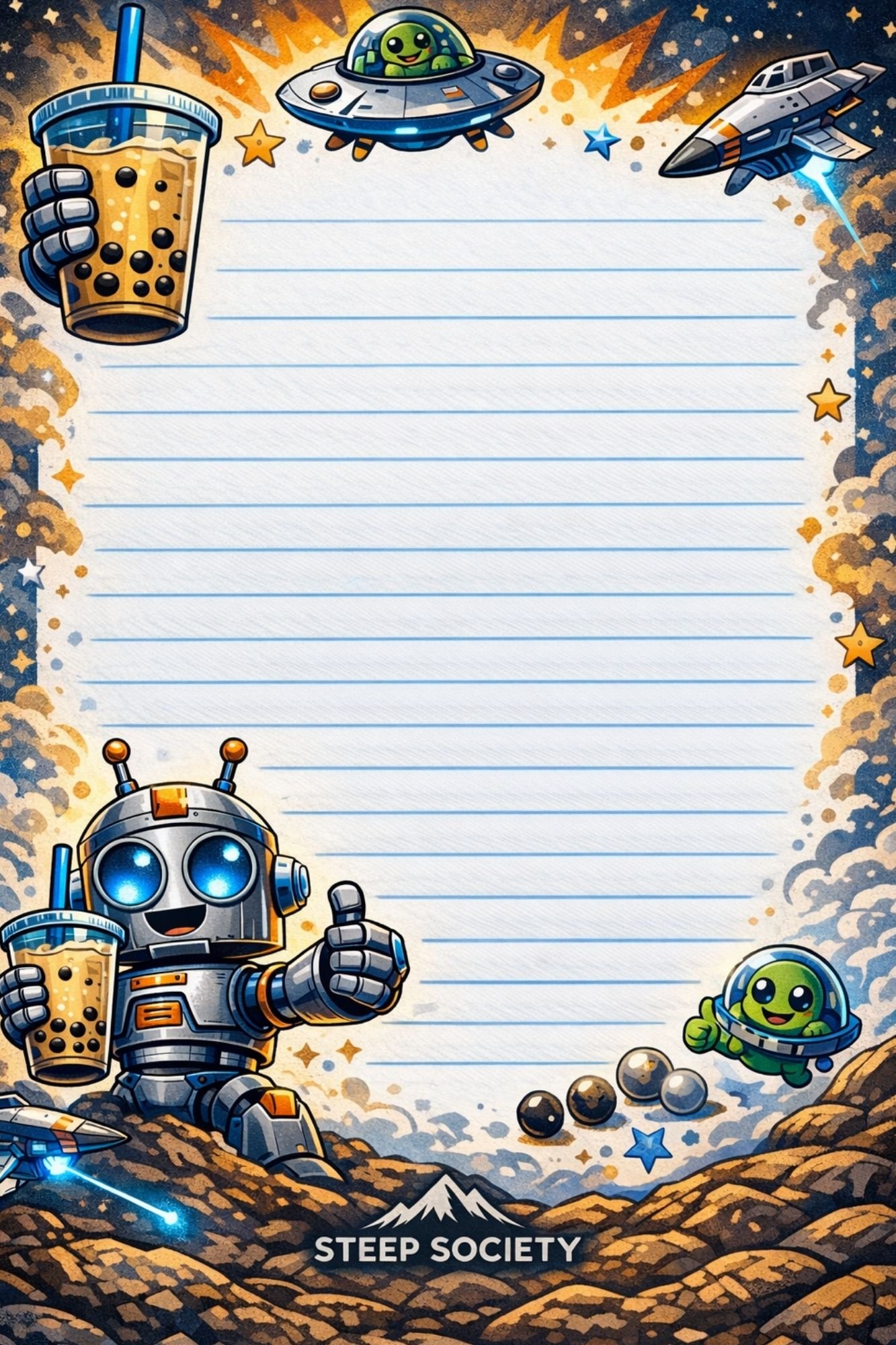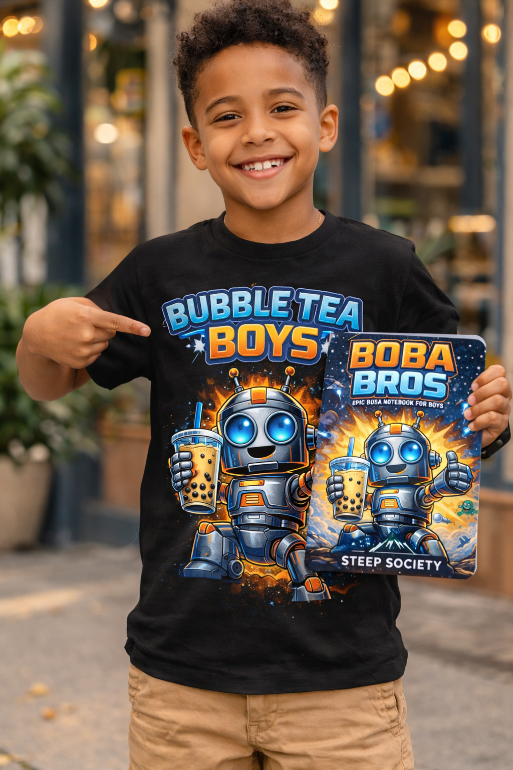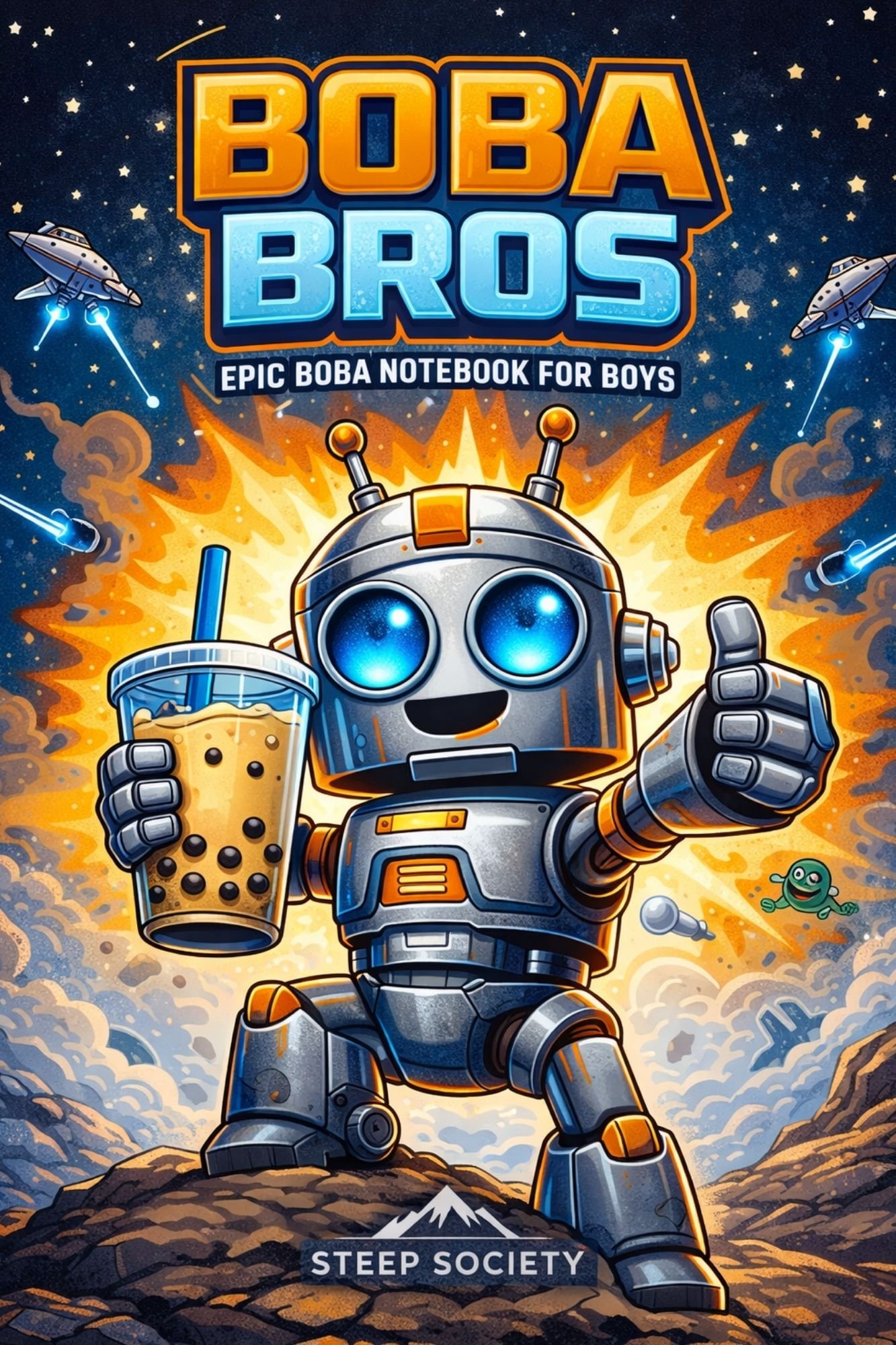 This notebook was made to stand out with a playful boys notebook aesthetic featuring a fun robot-and-boba theme that feels adventurous, modern, and full of personality. It’s a great fit for kids and preteens who enjoy creative notebooks that reflect their interests, especially fans of bubble tea boys, boys with boba, and boba for boys themes.