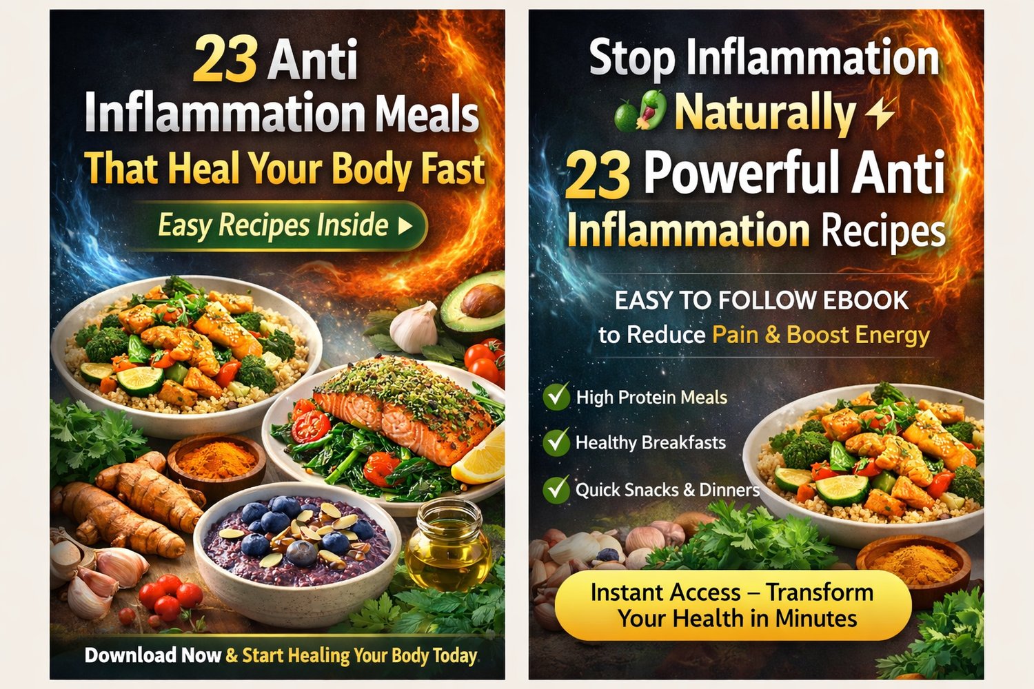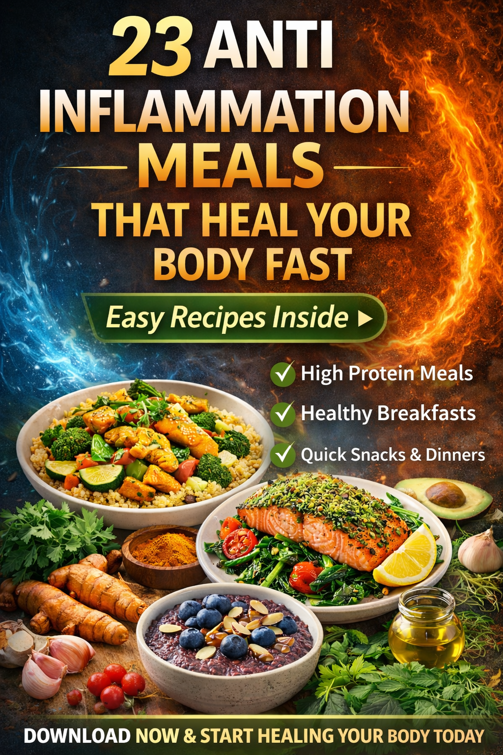 Discover 23 powerful anti inflammation meals designed to help you reduce inflammation, boost energy, and feel better naturally. This easy-to-follow ebook is packed with anti inflammation recipes, including high protein anti inflammation meals, quick dinners, healthy breakfasts, and snacks.