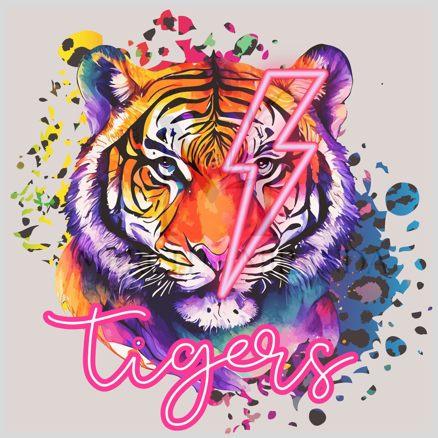 Tiger Mascot - Tigers - Neon Lightning Bolt - School Spirit - Digital Download - Leopard Print