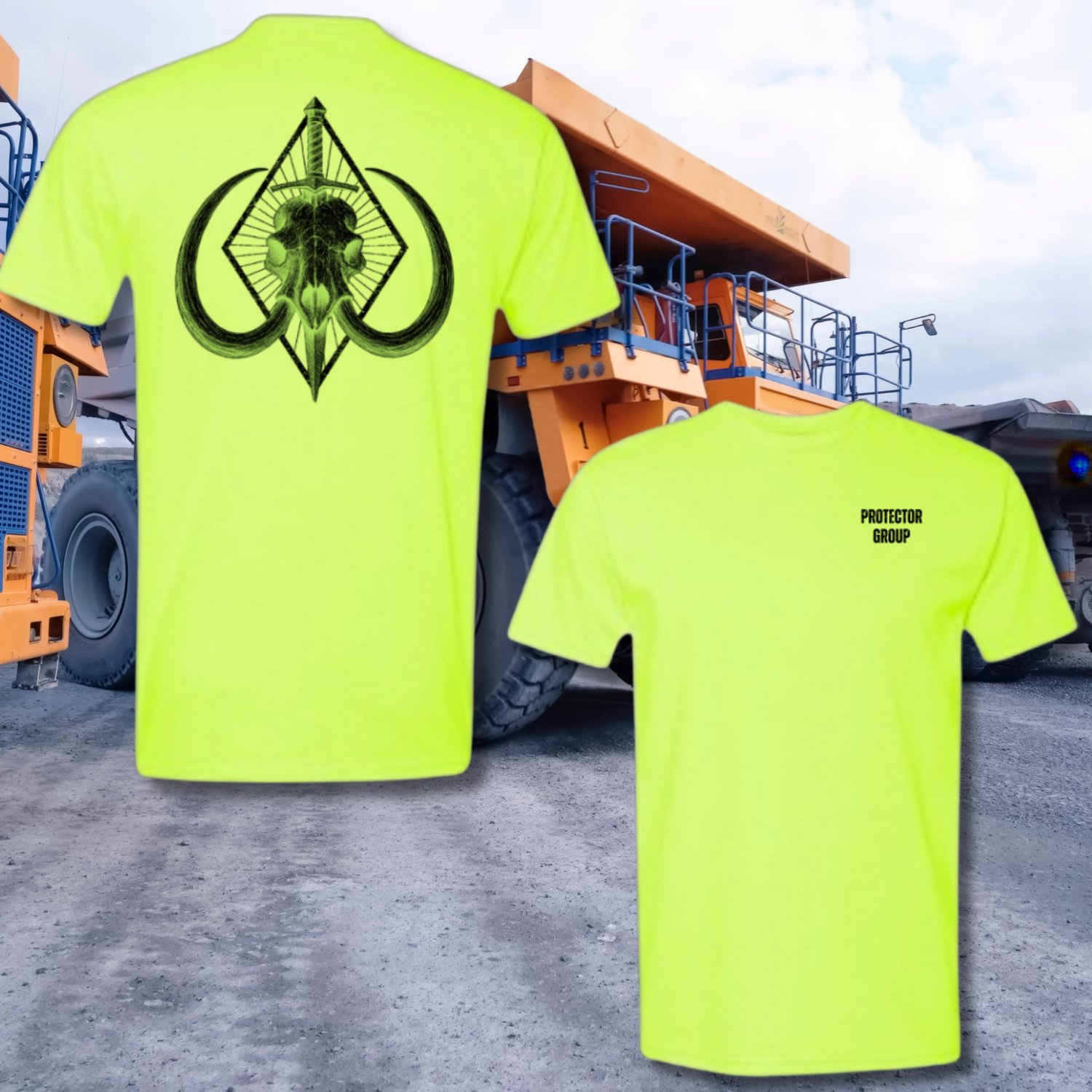 The Protector Group Mammoth 'Safety Yellow' TShirt represents the core of Protector Group...fathers, protectors, and hardworking men who take responsibility for their families and the world around them.