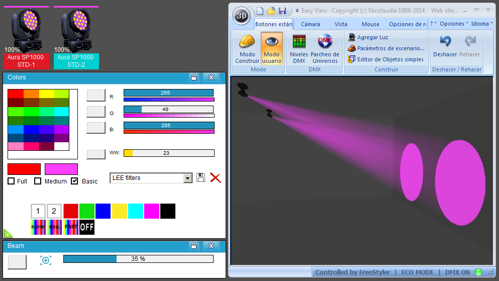 Esta Librería SSL2 está optimizada para trabajar con Magic 3d Easy View. Es decir para ver una representación 3D de las secuencias que estemos realizando con Freestyler, QLC+ o cualquier otro soft que se conecte con Magic 3d.