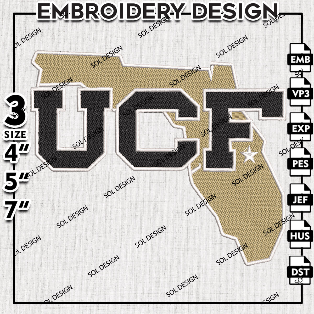 UCF Knights College Football Team Map Logo Embroidery Designs, NCAA UCF Knights Machine Embroidery Files, NCAA Logo embroidery designs, NCAA UCF Logo, Digital Download