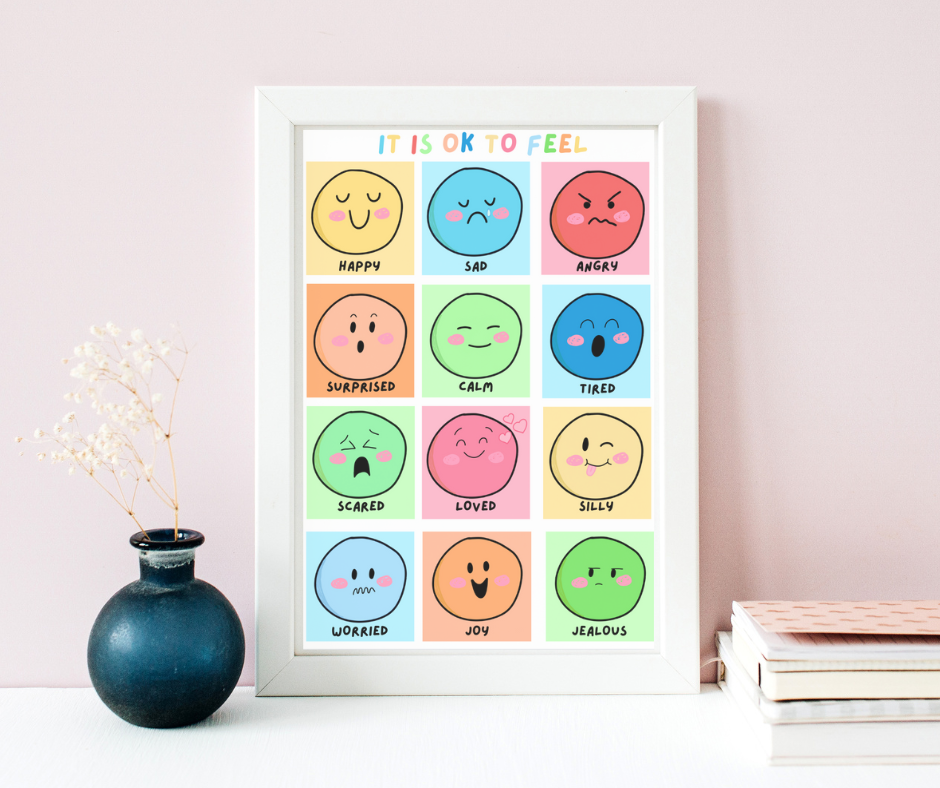 Digital printable It is OK to feel emotions poster, feelings poster, autism poster, children's mental health & mindfulness wall art,