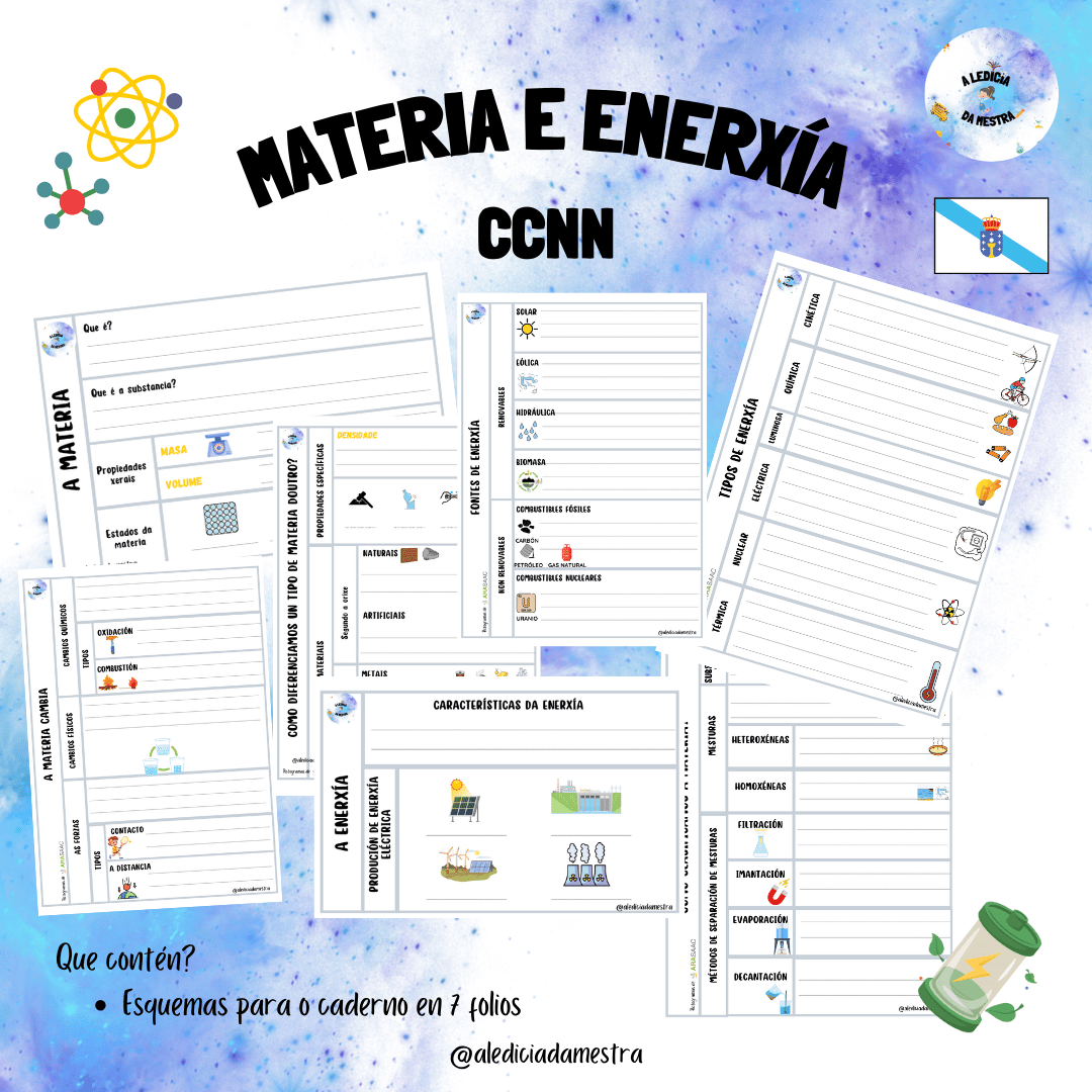 Esquemas de ciencias naturais sobre a materia e a enerxía.