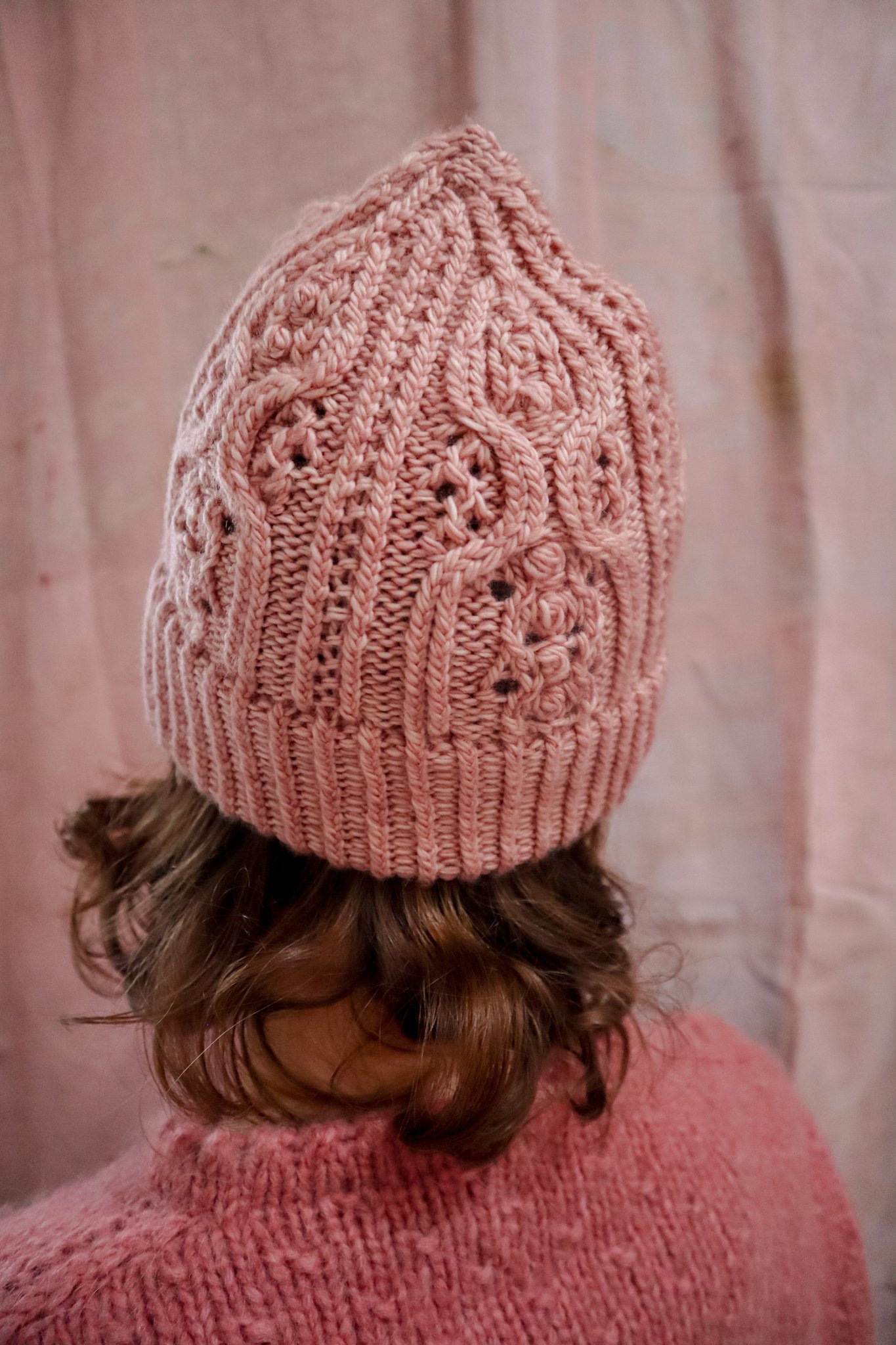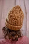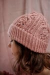 The design is a combination of twisted stitches, cables, lace and bobbles. The instructions are charted as well as written.