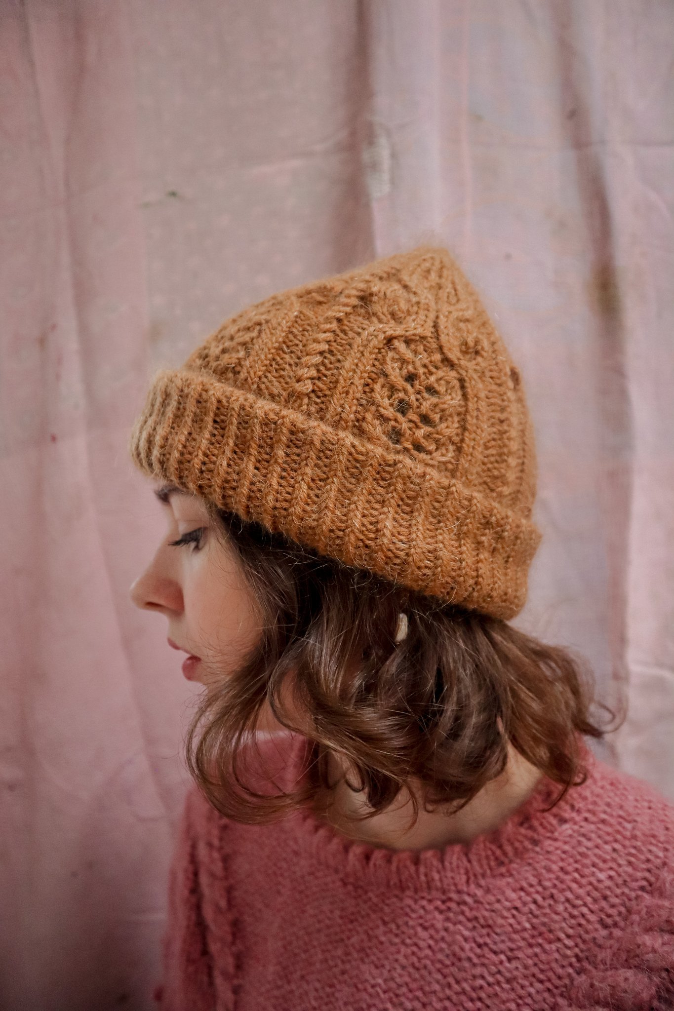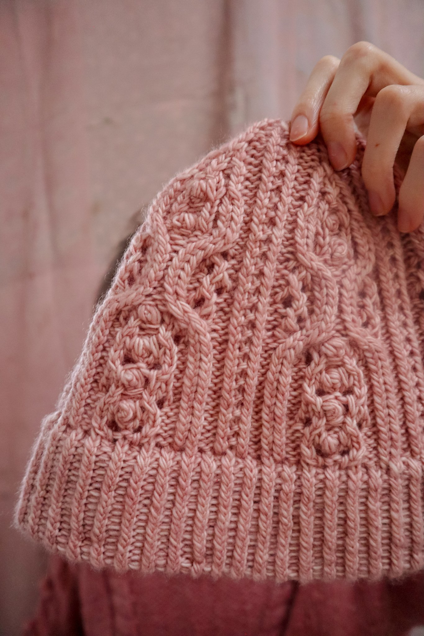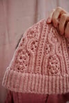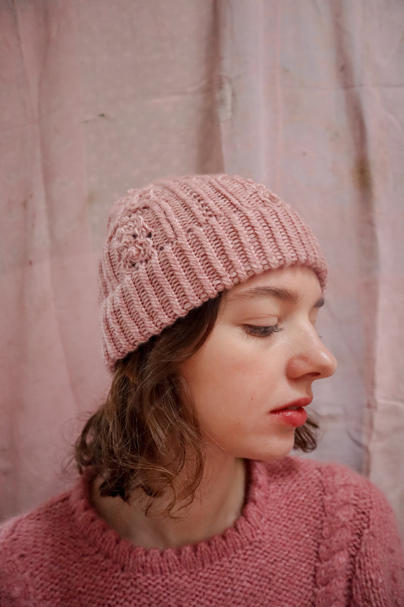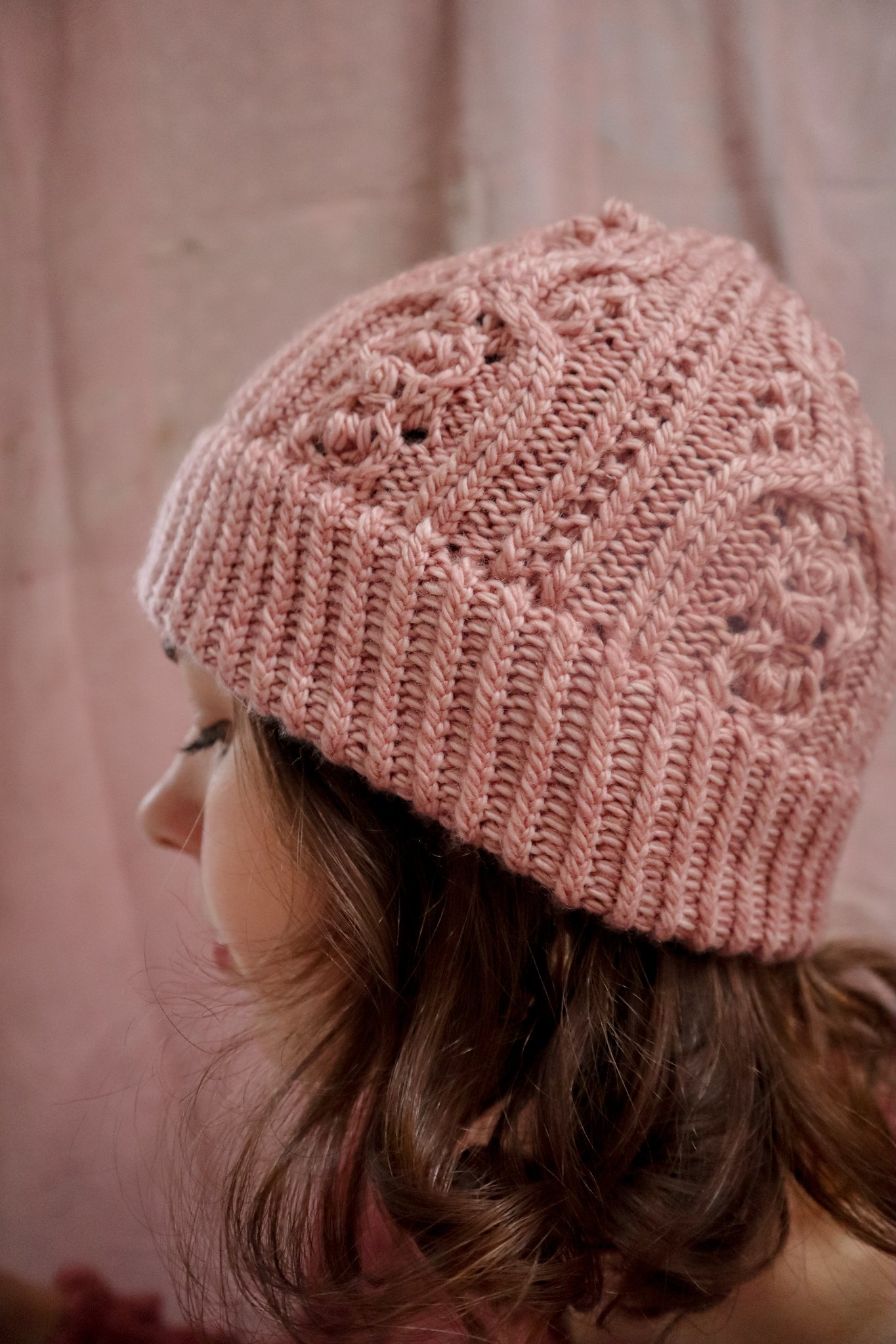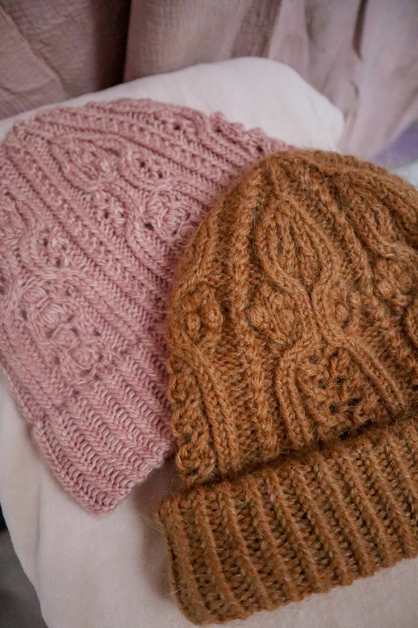 The Hermione Hat is worked starting from the brim. There are four brim options: single layer, single fold, double layer and double fold. Version 1 (brown) has more lace and version 2 (pink) has more bobbles. Both come in four sizes, ranging from child to adult large. Altogether that equals 32 different hats that can be made with this pattern!