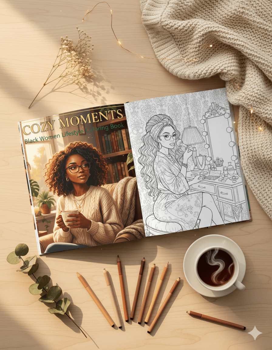 π β¨ COZY MOMENTS - Black Women Lifestyle Coloring Book β¨π