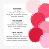 + Detailed Hex Codes, RGB, and CMYK values for each color