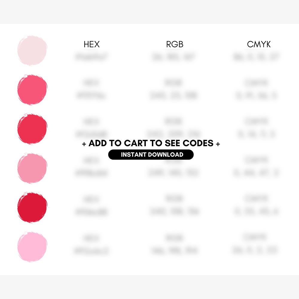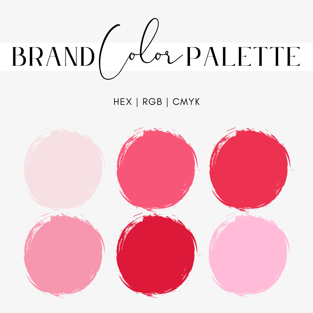 Transform your brand with our vibrant Valentine Color Palette, perfect for the creative entrepreneur! This bright and lively collection features an exquisite range of pink shades, from pale blush to deep rose, designed to infuse your branding design with a touch of romance. Whether you're crafting a website color scheme, developing small business brand packaging, or designing marketing materials, these versatile hues are ideal for both print and digital projects. Compatible with Canva, Procreate, and Goodnotes, the palette includes Hex Codes, RGB, and CMYK values to ensure seamless integration across all platforms. Perfect for Valentine's Day promotions or any time you want to add a splash of color to your online shop and social media. Elevate your business with these stunning brand colors and captivate your audience with their vibrant charm!