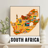 illustrated South Africa map print Printable map of South Africa gift home decor South Africa map wall decor Kid room Nursery map wall print
