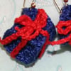 Pretty earrings to make for yourself or as a gift. Make them in different sized thread or yarn to make them bigger and use them to decorate cards or your Christmas Tree or cake.