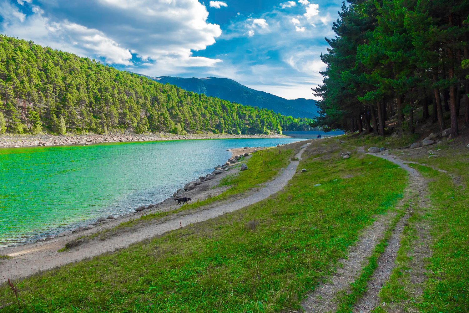 A beautiful corner between mountains in a country that is both small and charming and surrounded by nature everywhere. You can take a nice walk around the whole lake. In winter the roads are full of snow and the water freezes. The sky is clear and the forest very green.
