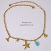 Red agate, aquamarine crab pendant, stainless steel, 14K gold, etc.