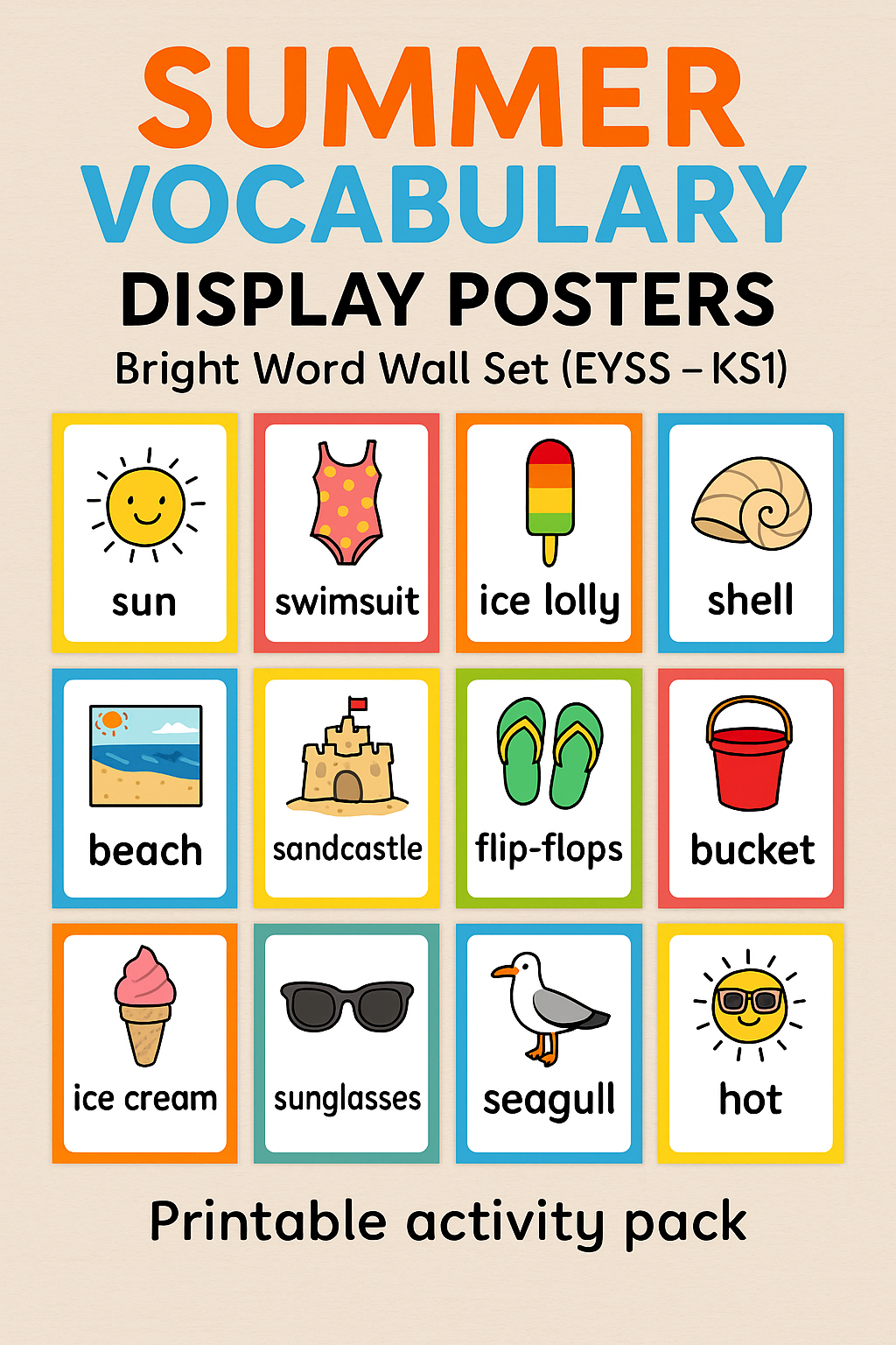 Summer Vocabulary Display Posters – Bright Word Wall Set (EYFS – KS1)