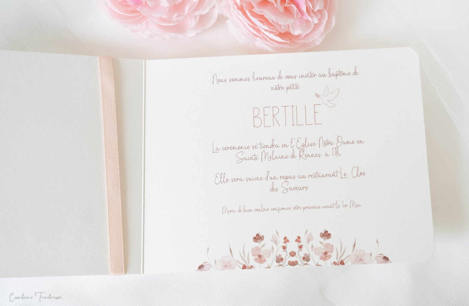 L'intérieur du faire-part est à personnaliser selon le texte de votre choix. Au dos, il est possible d'ajouter vos noms et adresse, numéro de téléphone ou mail de contact.