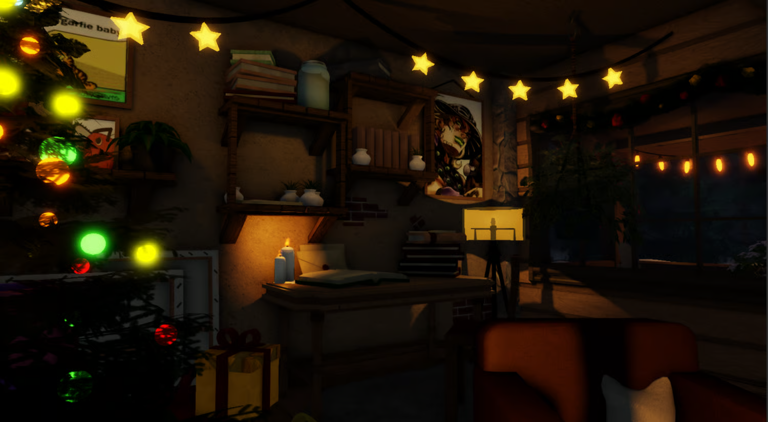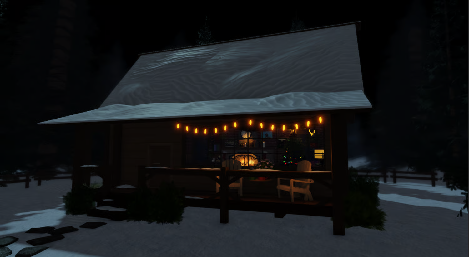 Cozy Christmas Shack is a handcrafted holiday retreat filled with warmth, charm, and festive spirit. Featuring a glowing fireplace, decorated tree, string lights, and a snowy forest exterior, this build is perfect for seasonal roleplay, storytelling, or peaceful hangouts. From the flicker of candlelight to the comfort of a blanket-covered bed, every corner captures the magic of a winter night.
