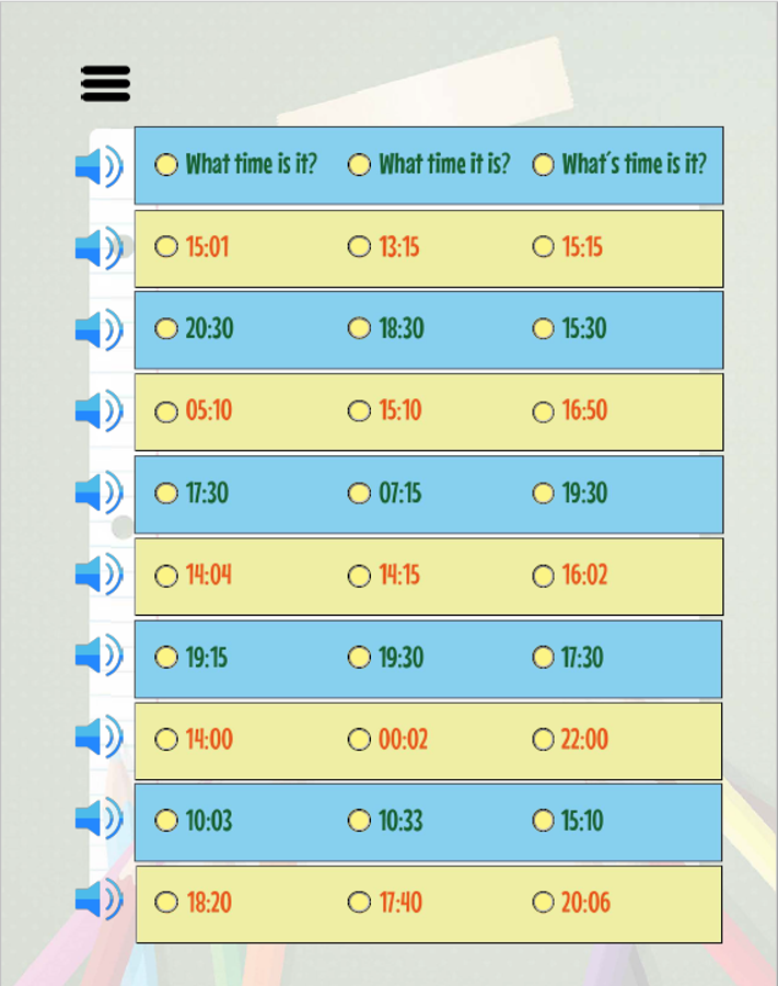 This file contains a set of interactive activities in PDF, meant for learners to practise (or test) grammar, vocabulary and pronunciation.