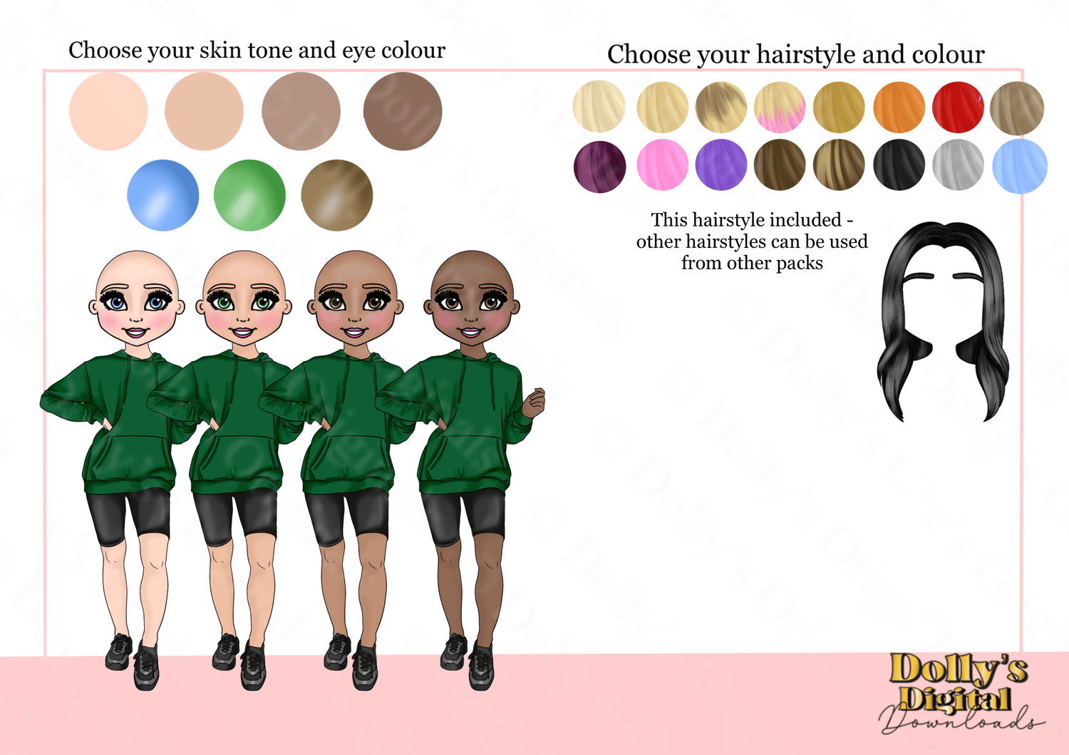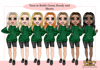 Instant digital download of our Teen Girl in Bottle Green Hoody and Cycle Shorts Dolly PNG (28 PNG’s)