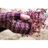 I designed these fingerless mittens to work with our magically marled Chimera yarn and a complementing solid. The mosaic pattern is charted and very simple to follow. The colourwork is created by slipping stitches – much easier than it looks!