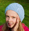 26 stitches and 29 rounds over 10cm/4 in over main cable rise pattern. 25 sts over stockinette.