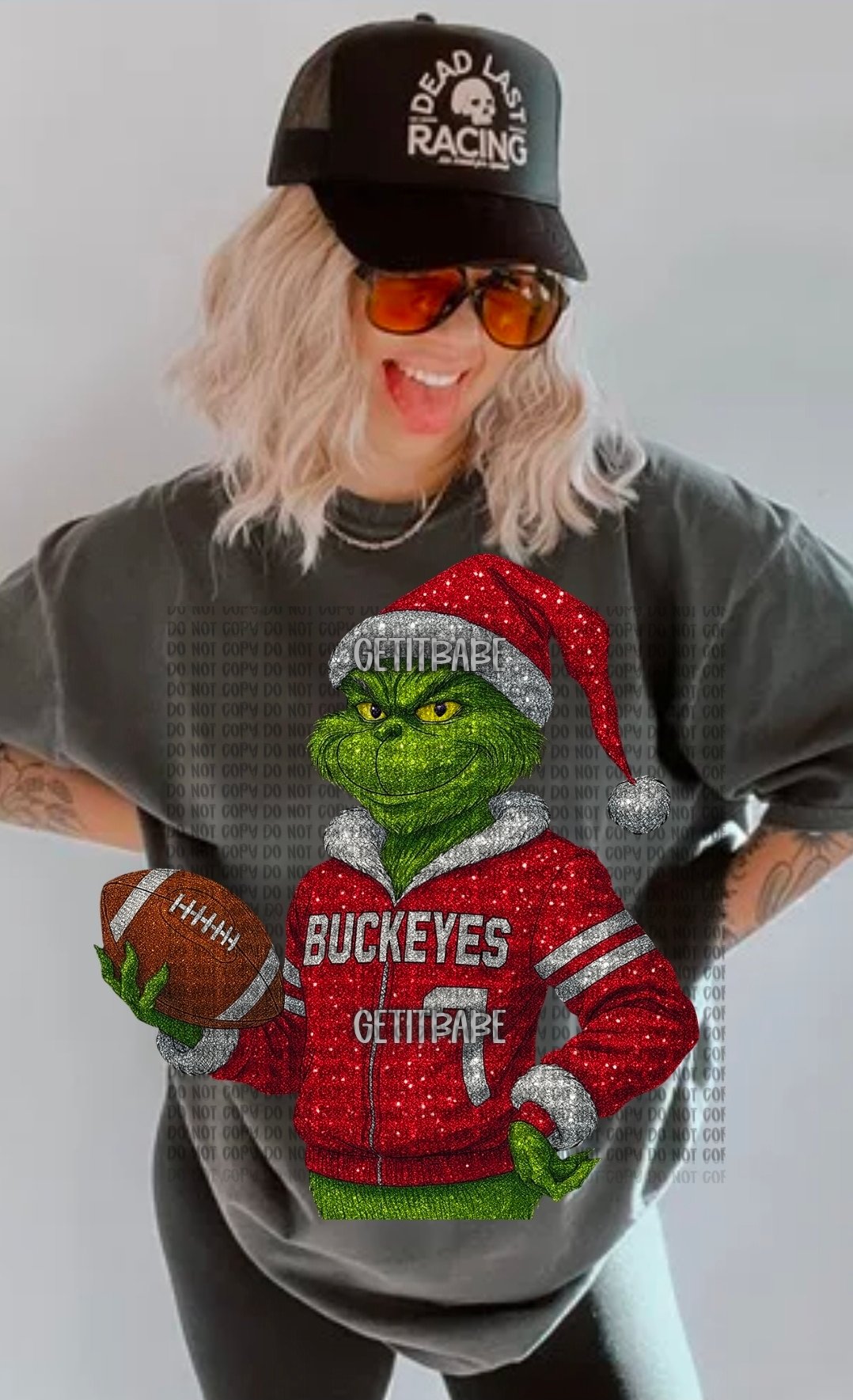 FAUX SEQUIN GLITTER BUCKEYES GRINCH